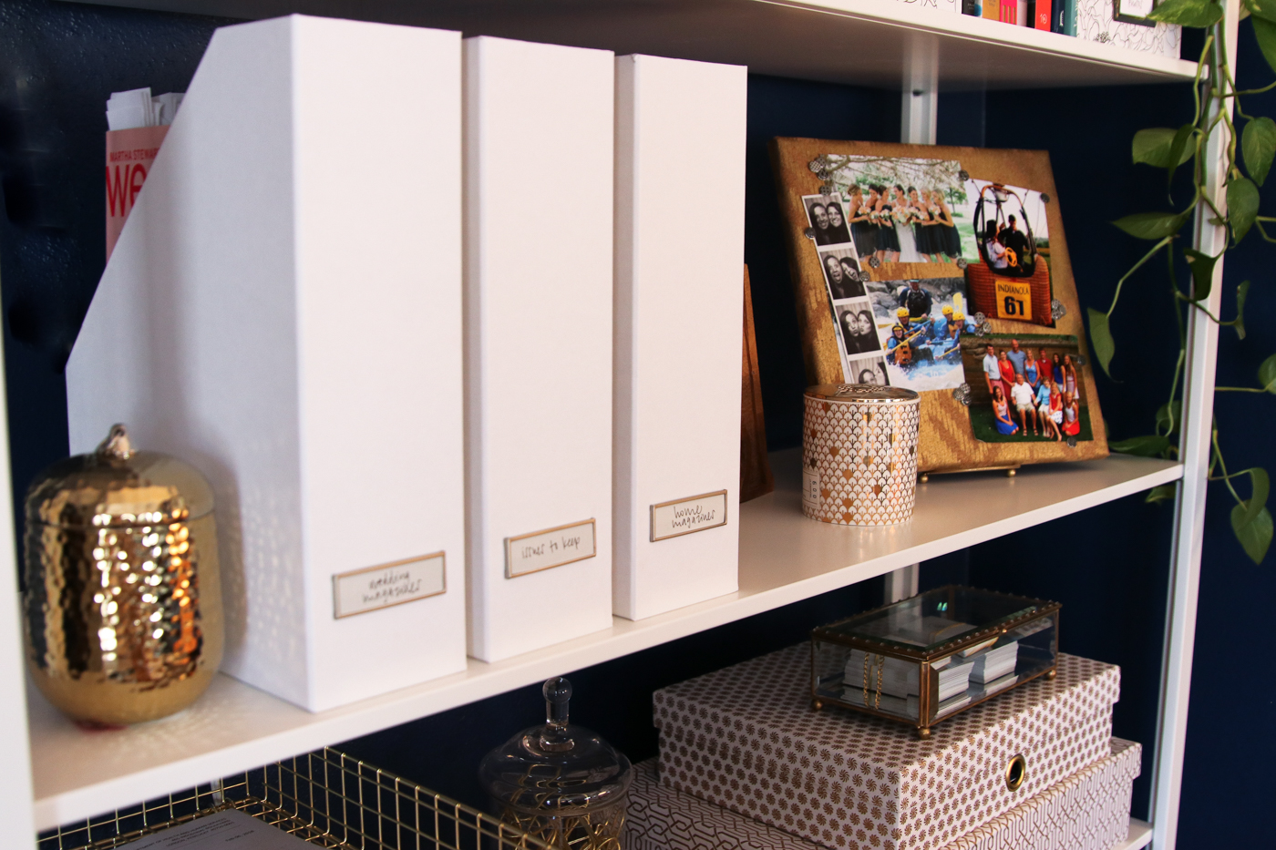 - 3 heavy-duty white magazine holders also from the Container Store