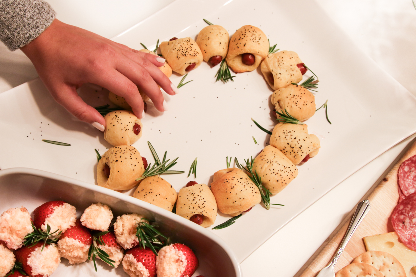 At our house, we eat pigs in a blanket for dinner periodically. I’m obsessed and they make me feel so nostalgic! Since they’re easy and tasty, I threw some together for the party. I use little smokies to make mine which made them the perfect finger food for our guests. I also spritzed them with Pam and sprinkled on poppyseeds before they cooked to fancy them up a bit.